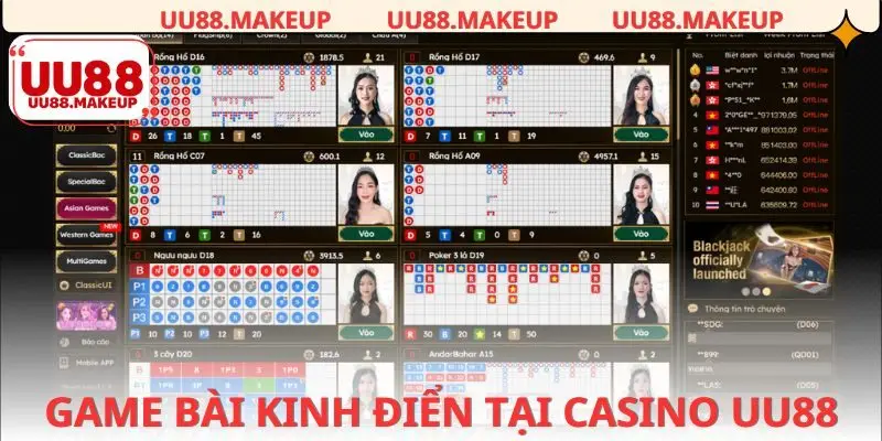 Sảnh casino UU88 là nơi hội tụ của những trò chơi cá cược kinh điển, giao diện trực quan, thao tác mượt mà và dễ làm quen. Dưới đây là ba trò chơi tiêu biểu mang đến trải nghiệm đáng thử.